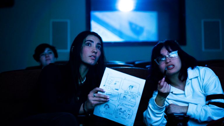 Franklin Hall’s third floor is home to a film screening room featuring a 14-foot screen and stadium seating for 20 people.