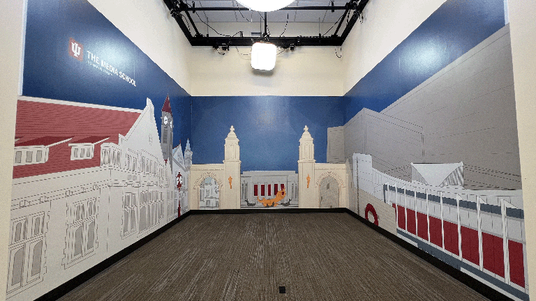 The studio also contains a multi-use green screen, a backdrop that can be used by student broadcast reporters to record standups, and a multi-light setup that can be adjusted as needed using a DMX controller.