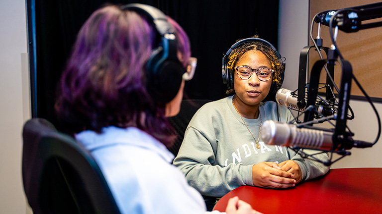 Students can use a RØDECaster audio production console and professional audio setup to record student radio shows and podcasts with up to three participants. Students can capture video of the podcast session with a multi-angle webcam and lighting setup. Students can even do live camera switching on the fly using the RØDECaster’s colored touch pads, which interface with OBS software via MIDI control.