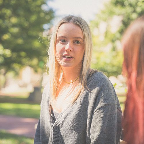 “I’m from Columbus, Ohio, and I’m a junior majoring in media advertising with a creative concentration. I’m in the Media Scholars program, which has been the best. My mentor, Jay Kincaid, has been able to connect with us more personally. Being a freshman during COVID was really hard, but he encouraged us to reach out, which has been super beneficial because that’s what’s made me discover so many opportunities. I’m in Women in Media and work as a Media School ambassador, where I give tours to prospective freshmen and work at Media School events. I’m also the vice president of my sorority, Chi Omega.