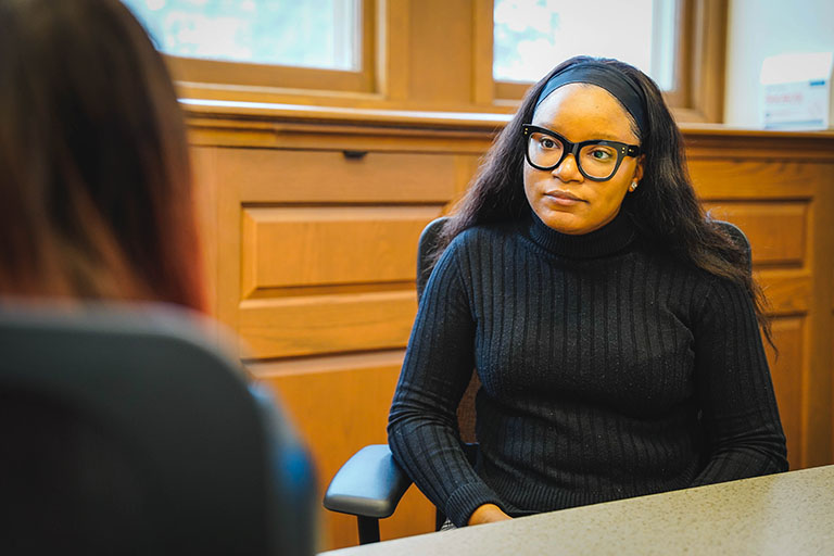“I’m from Chicago and got my bachelor’s degree from Roosevelt University, where I studied journalism. I love journalism, but I also know that in the future I would love to teach. IU not only gave me a full-ride scholarship, but offered me a position as a teaching assistant, so I thought, ‘OK, I can learn journalism and also get the necessary skills to teach in the future.’ My focus in journalism is print, so I love writing and don’t see myself ever getting away from that. I have a real passion for telling stories about people that are often overlooked — primarily stories about marginalized groups.