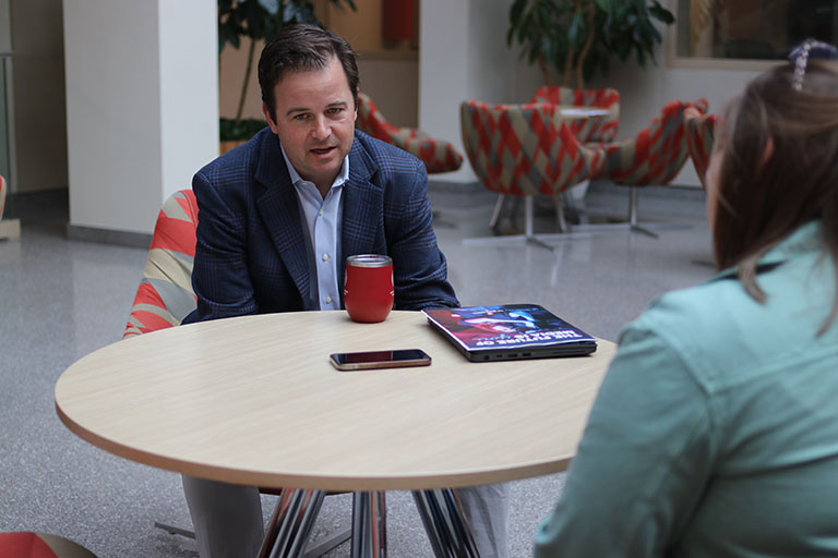 After I graduated in 1997, I applied at a few radio stations because that’s what I knew best. I had so much confidence that I went after my hometown station, KMOX, knowing that it was a legendary radio station and that to get on the air there would be far-fetched. I applied to an opening they had running the board and producing, and I got the job. And I knew once I was in, I could see how the best of the best do it. There was a chance that if I’m good and an opportunity opens up, I could be on the air there. A job opened up, I went for it and I got it. I’ve been at KMOX for 25 years. I went from producer to reporter to host to sports director to news anchor, but really I still do all of those things. And it’s been a great run.