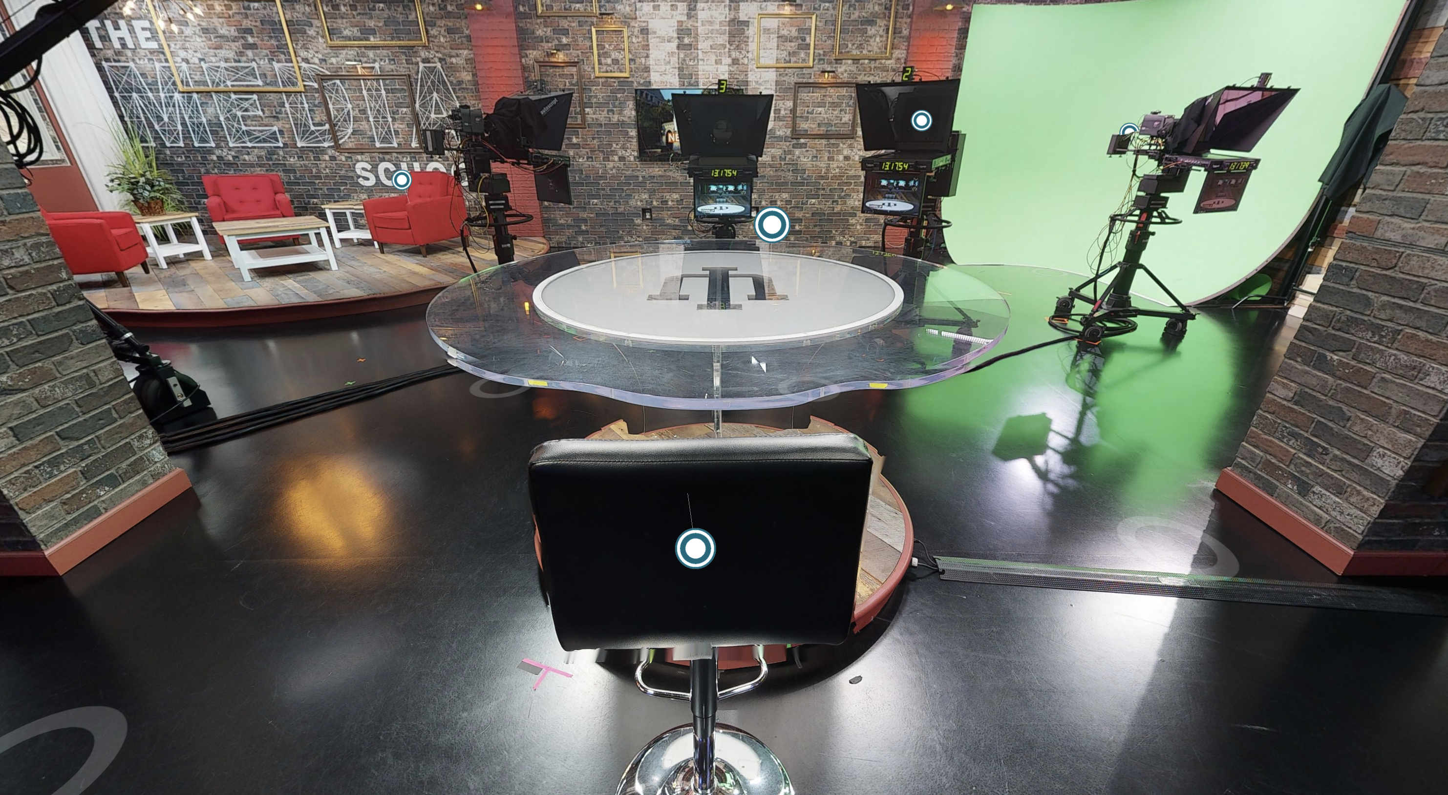 The Beckley Studio is equipped with four robotic cameras. The studio also has a camera on a jib, plus the ability to connect three additional cameras in the adjacent commons space or in classroom 312. It contains tools such as a green screen, which allows reporters to do standups in front of virtual backgrounds; RoscoVIEW polarizing filter technology, which allows the Old Crescent to be used as a backdrop; a talk show set; and a performance set for musicians and other entertainers.