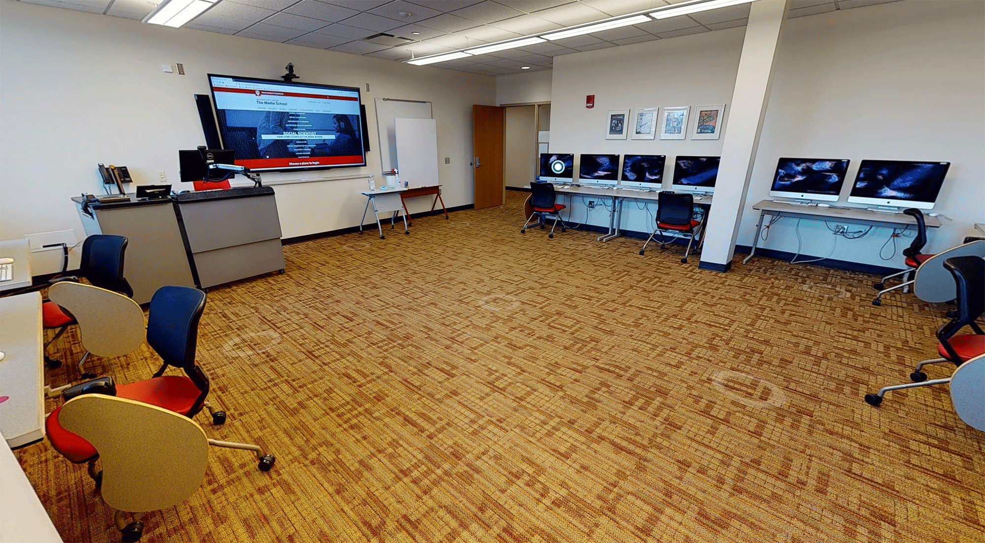 Room 060 is a traditional computer classroom, used for writing, video editing and graphic design classes.