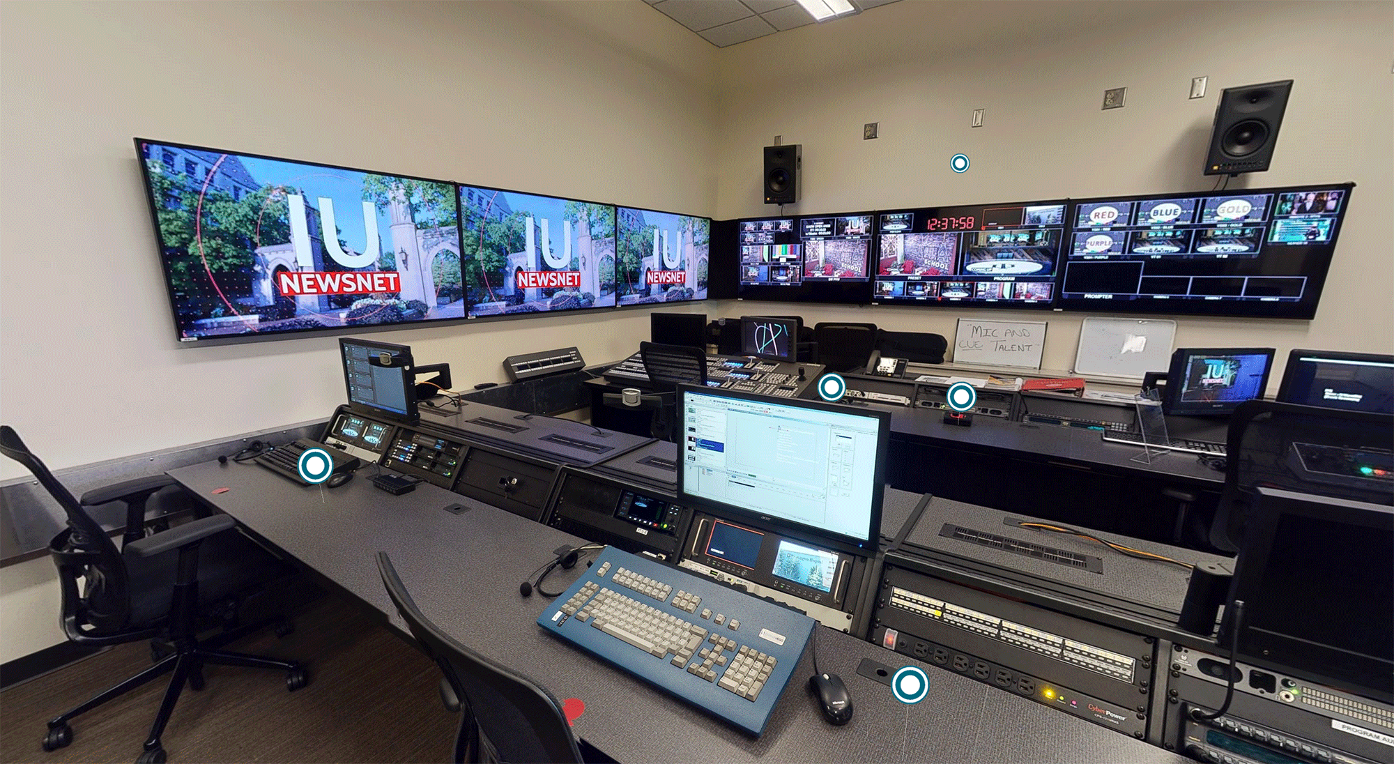 Programs shot in the Beckley Studio are produced via the adjacent Ed Spray Control Room, which has six server channels of video playback/record and a NewTek TalkShow system for live interviews via Skype. The control room and studio complex is connected via fiber optics to the Radio-TV Building and the Mark Cuban Center for Sports Media and Technology at Assembly Hall. Broadcasting to the world is easy via Facebook Live.