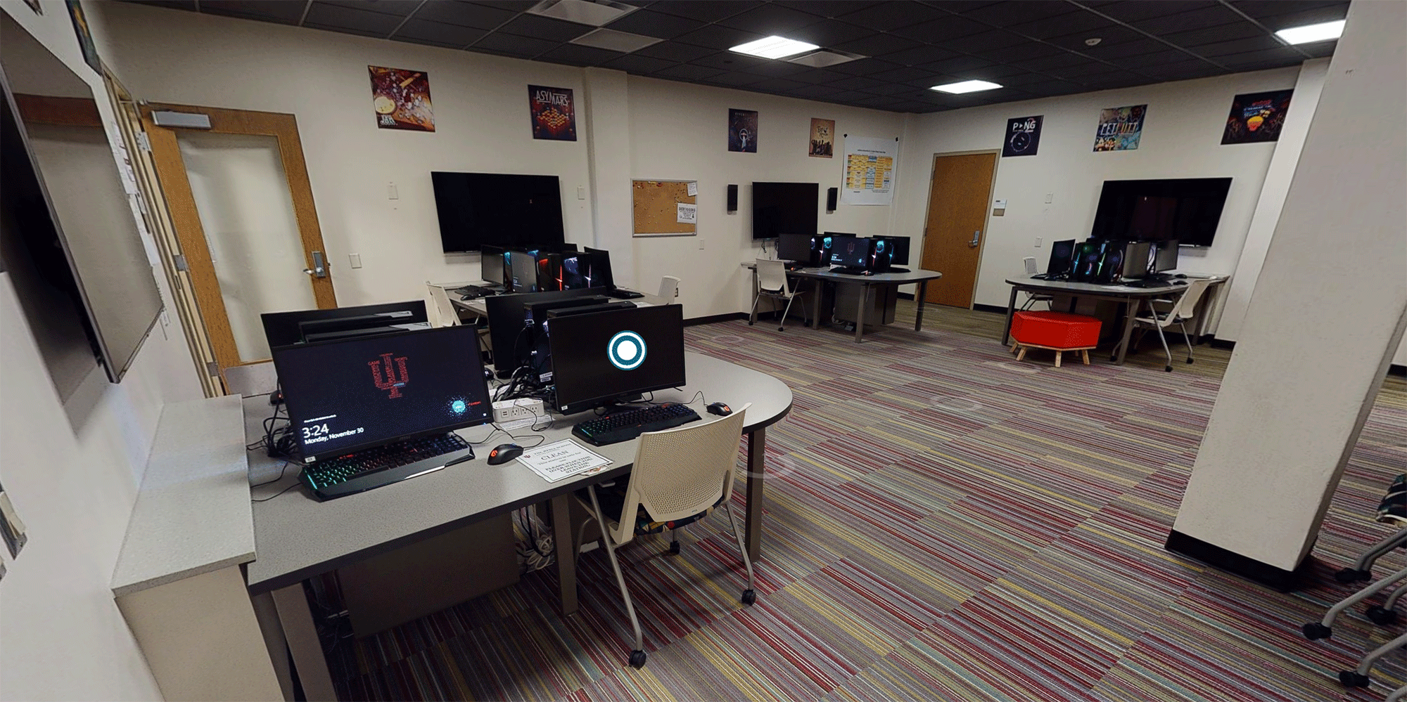 Franklin Hall has one of the most powerful computer classrooms on campus, with 19 Acer Predator G1 GTX 1080 machines for game design production classes and other groups, like IU’s eSports teams.