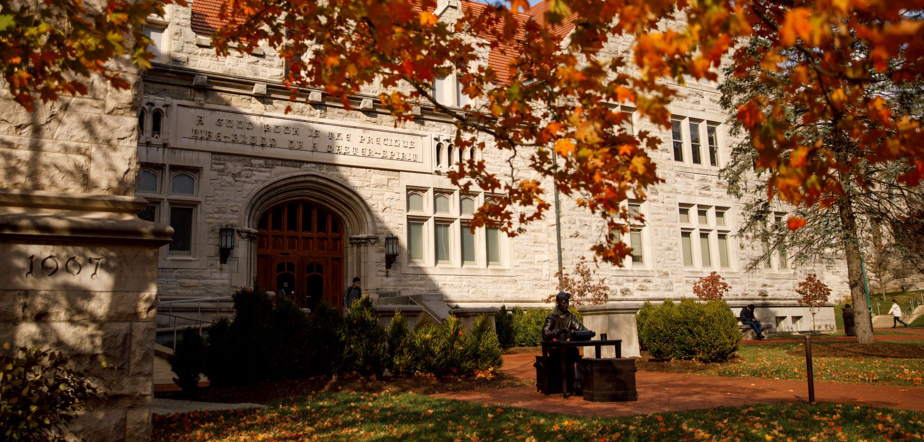 >> Over one hundred years ago my grandfather and Henry Sherman Adams, a Monroe County farmer and a stonecutter, helped lay the foundation for a new campus library. Now known as Franklin Hall, this is its story. For the first sixty years, this beautiful limestone building played a central role in the lives of thousands of students.