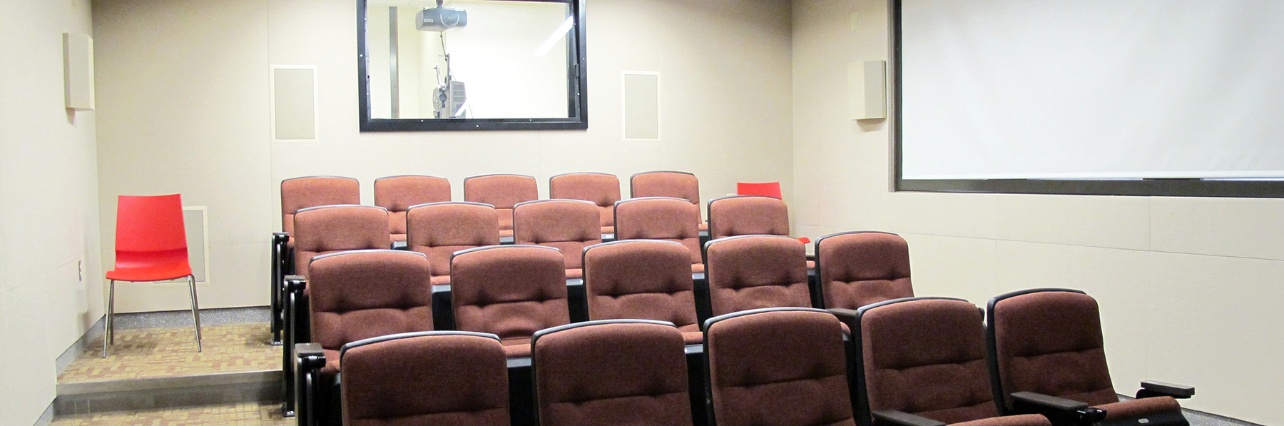 Franklin Hall’s third floor is home to a film screening room featuring a 14-foot screen and stadium seating for 20 people.