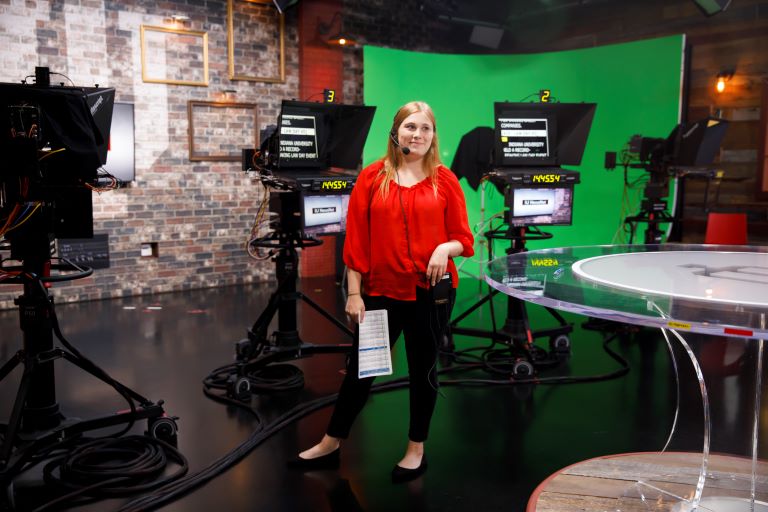 The Ken and Audrey Beckley Studio gives students the chance to gain hands-on broadcast and production experience. The studio is also home to IUSTV, the campus’s student-run television station.