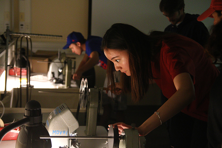 The Media School offers courses where students can learn to shoot on 8mm or 16mm film. Students then develop the film by engaging in the creative process of cutting, splicing, and manipulating it.